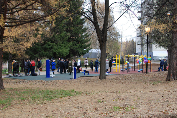 За десять месяцев была проделана большая работа: смонтирован спортивный городок; оборудованы пешеходные дорожки; установлены столбы с электрическими фонарями; оборудованы парковочные места для велосипедов и автомобилей; вновь обустроен лестницами и пандусами спуск от ДКН к ул.Курчатова.