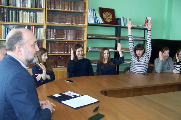 Алексей Ясинский рассказал о формировании, структуре, целях и функциях существующих органов законодательной власти страны. Учащиеся узнали, кто является представителями Ярославской области от губернатора и Думы в Совете Федерации, кого ярославцы избрали депутатами  Государственной Думы РФ.