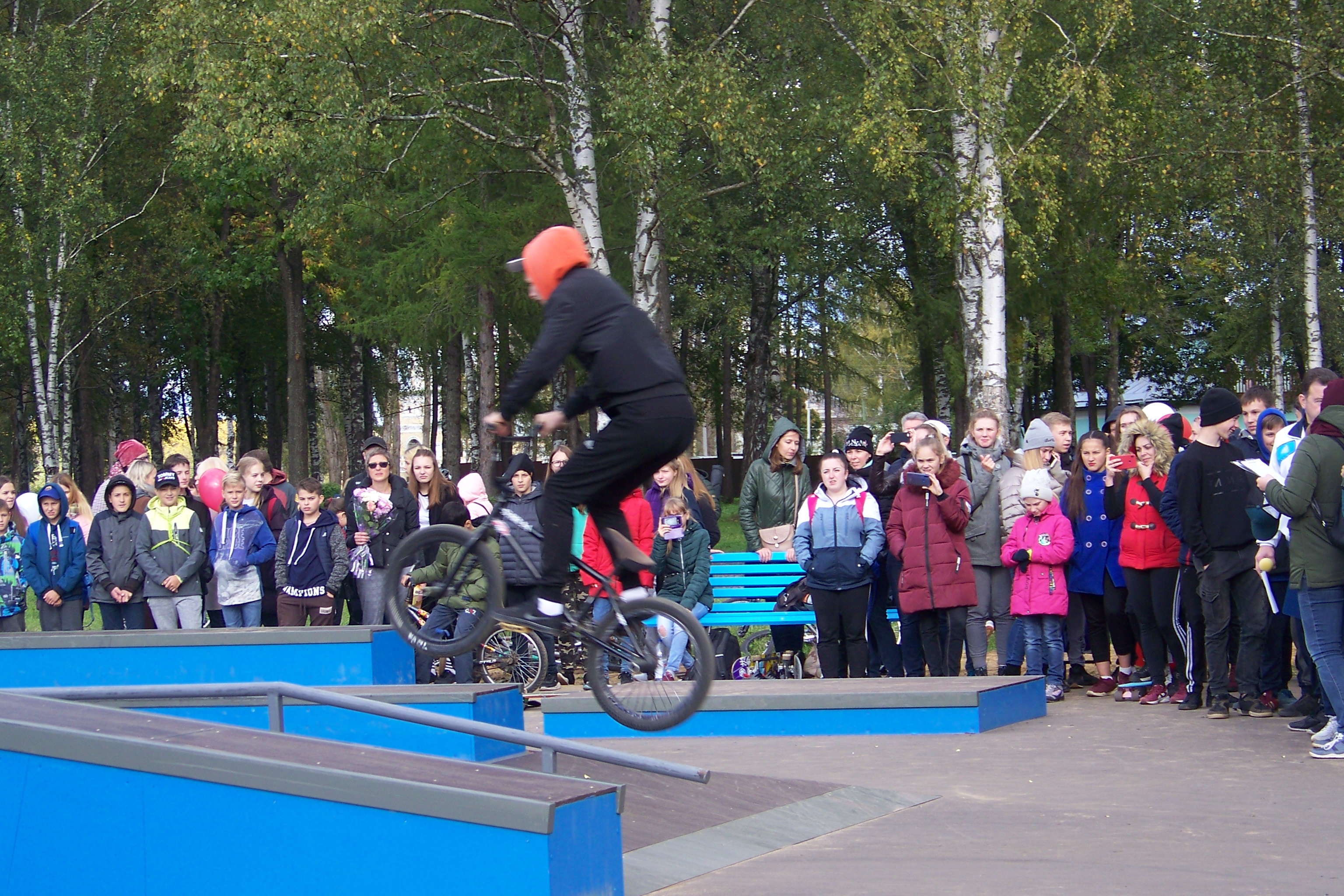 На открытие приехали спортсмены из города Ярославля, которые в числе первых опробовали скейт-площадку и устроили красивое шоу для всех гостей праздника.