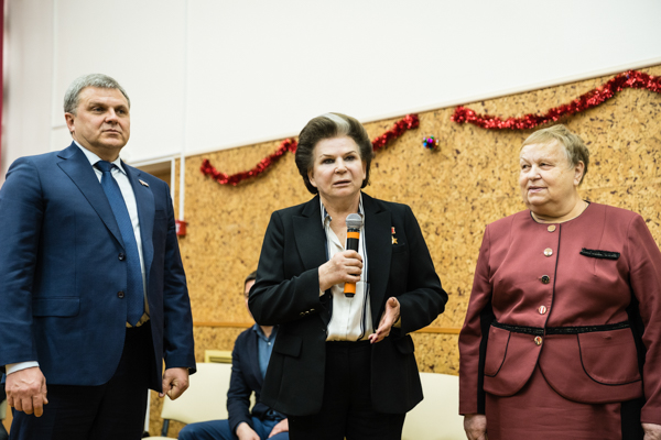 Председатель областной Думы Алексей Константинов и депутат Государственной Думы РФ Валентина Терешкова побывали сегодня в Шильпуховском детском доме Первомайского района и поздравили его воспитанников с наступающими новогодними праздниками.