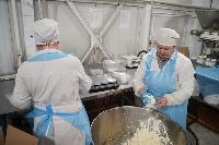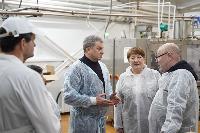 Еще одним пунктом программы стало посещение небольшого предприятия по производству молока и молочных продуктов, которое располагается в поселке Юбилейный. Здесь работает около 100 человек. А суточный объем готовой продукции достигает 15 тонн.