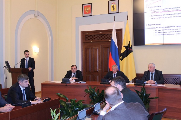 Сегодня депутаты, члены временной комиссии Ярославской областной Думы по вопросам развития водохозяйственного комплекса региона и представители рабочей группы правительства области «Волга – чистая река» провели совместное совещание, в ходе которого обсуждались вопросы о схеме водоснабжения и водоотведения муниципальных образований региона, о консолидации объектов водопроводно-канализационного хозяйства области, о взаимодействии департамента жилищно-коммунального хозяйства, энергетики и регулирования тарифов с муниципальными образованиями региона при реализации закона от 29.12.2016 № 104-з «О перераспределении между органами местного самоуправления муниципальных образований Ярославской области и органами государственной власти Ярославской области полномочий в сфере водоснабжения и водоотведения».