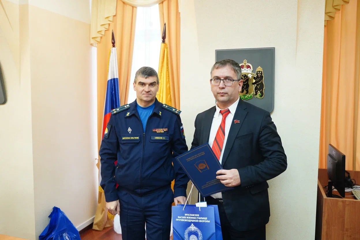 Руководство Ярославского высшего военного училища противовоздушной обороны поблагодарило депутатов Думы и предпринимателей региона за активное участие и помощь в обеспечении мобилизованных граждан. Встреча прошла в региональном парламенте. Заместитель начальника военного училища по учебной и научной работе училища