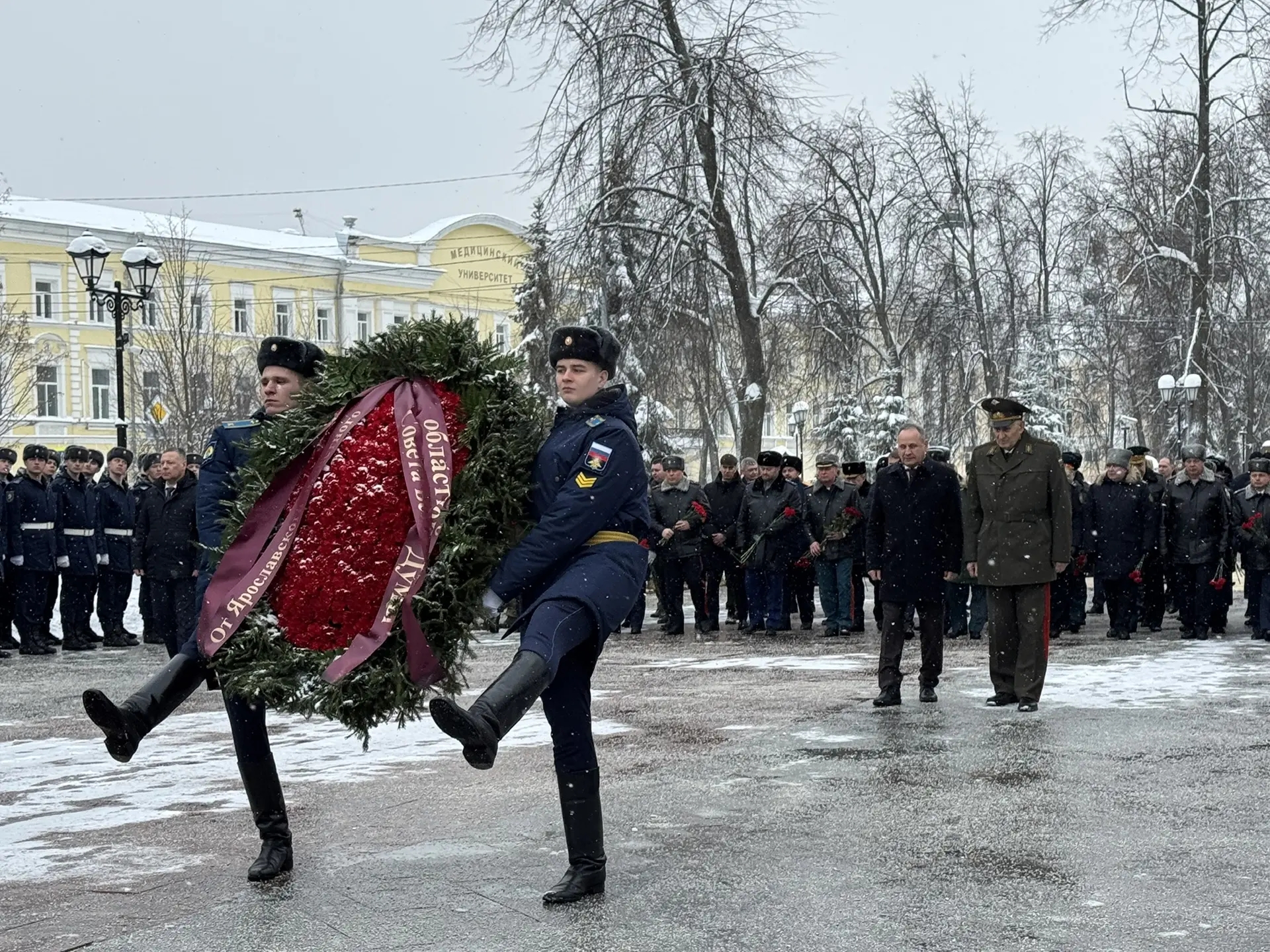 В Ярославле проходят торжественные мероприятия, посвященные Дню защитника Отечества. В преддверии праздника в областном центре состоялась церемония возложения венков и цветов к мемориалу «Вечный огонь». В мероприятии приняли участие губернатор области Михаил Евраев и председатель Думы Михаил Боровицкий, а также члены регионального Правительства, представители силовых структур, ветеранских организаций, военнослужащие.
