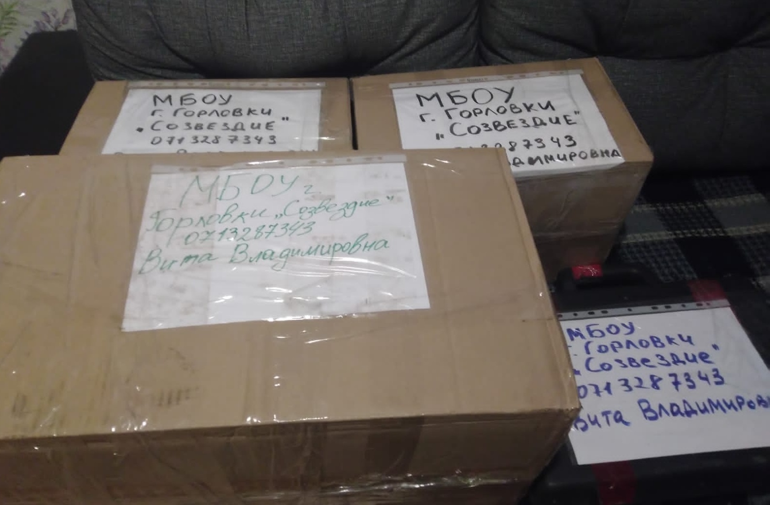 Гуманитарную помощь собирали всем миром. В коробки, сумки и ящики бережно упакованы радиостанции, продукты питания из пункта сбора гумпомощи в Семибратовской библиотеке, специализированные книги и тетради для детей-инвалидов горловского дома-интерната, прибыли посылки из Оренбурга и из Якутии от ветеранов-десантников. В сборе помощи принимали участие неравнодушные люди и организации - от Боевого братства десантников до партии «Единая Россия».