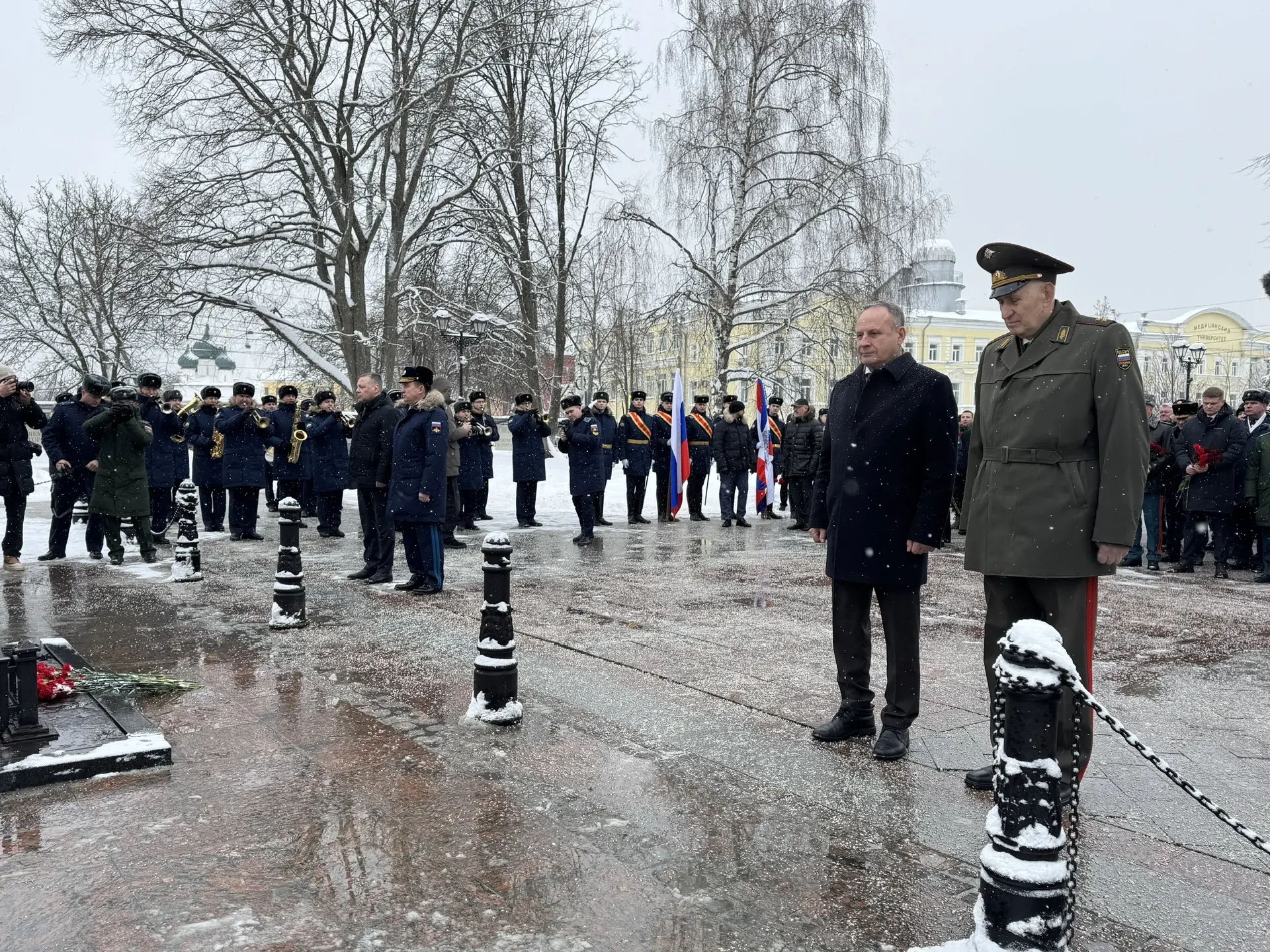 В Ярославле проходят торжественные мероприятия, посвященные Дню защитника Отечества. В преддверии праздника в областном центре состоялась церемония возложения венков и цветов к мемориалу «Вечный огонь». В мероприятии приняли участие губернатор области Михаил Евраев и председатель Думы Михаил Боровицкий, а также члены регионального Правительства, представители силовых структур, ветеранских организаций, военнослужащие.